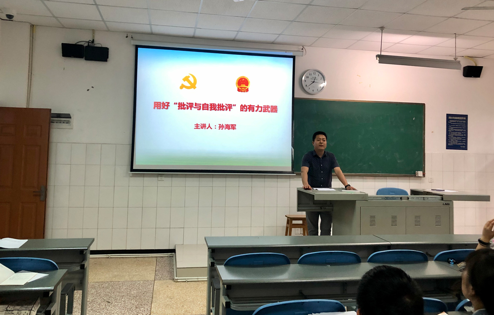 孙海军书记以自身经历结合党的三大优良作风之一的“批评与自我批评”,为全体党员讲了题为“用好批评与自我批评的有力武器”的专题党课,带领全体党员详细学习党的优良传统“批评与自我批评”相关内容,系统学习了什么是批评与自我批评、批评与自我批评工作存在的问题以及在实际工作中如何做好批评与自我批评。学习过程中,孙海军老师指出,共产党员也是人,也有不足和缺点,也会犯错误,但正是因为我们党有“批评与自我批评”这一有力武器,才使得中国共产党成为纠错能力和执政能力都非常强的政党,成为世界上最伟大的政党。