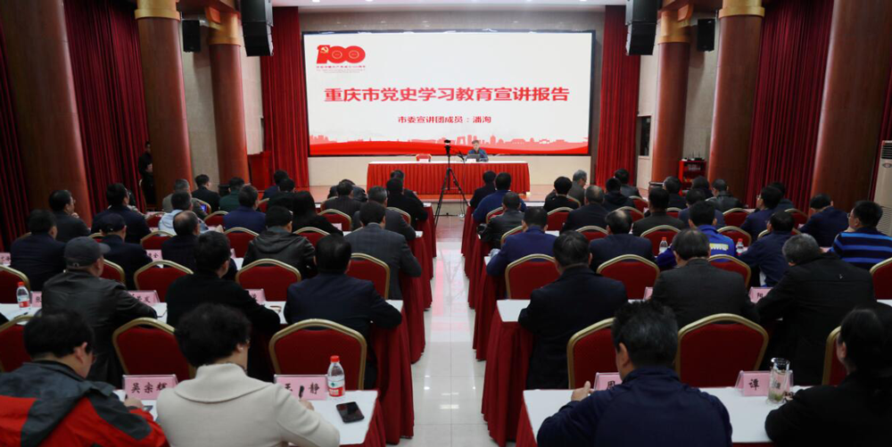 党史学习教育重庆市委宣讲团成员、学校党委副书记潘洵围绕深入学习领会习近平总书记关于党的历史的重要论述,充分认识开展党史学习教育的重大意义;认真研读党史基本著作,全面了解中国共产党百年奋斗的光辉历程和历史性贡献;深刻把握开展党史学习教育的重点;开展党史学习教育,要学懂弄通做实习近平新时代中国特色社会主义思想,增强“四个意识”、坚定“四个自信”、做到“两个维护”四个方面,对党史学习教育的目标要求、学习内容和重点任务进行系统解读。随后,学校党委书记李旭锋就下一步扎实开展好学校党史学习教育系列工作提出三点意见:一是要遵循目标要求、原原本本学;二是要注重方式方法、丰富形式学;三是要坚持问题导向、联系实际学。