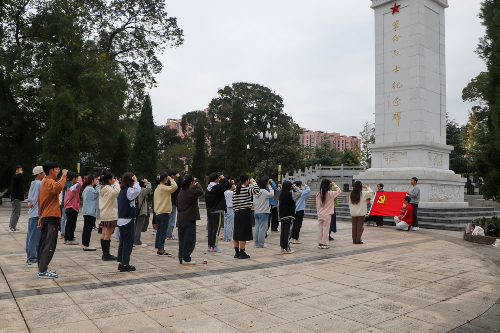 研究生第三党支部黄灿讲解了大足区烈士陵园、大足区革命历史陈列馆的基本情况及唐赤英烈士的光荣事迹。党员重温入党誓词后向革命烈士鞠躬表达哀思,纷纷表示将不忘初心、牢记使命,珍惜宝贵的时间,努力增强自己的核心能力,不断提升用所学专业知识回馈社会、报效祖国的本领,为乡村振兴贡献自己的一份力量。