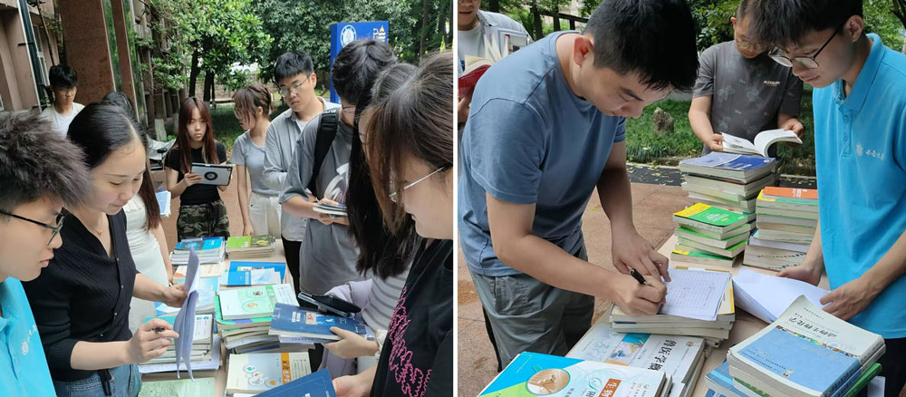 老师、学生免费发放,大家根据需求合理申请书籍,有序登记取用。活动中,大家积极参与,在传递书籍的过程中也让不同年级的同学共享书香,延续友爱,共燃思想之火。