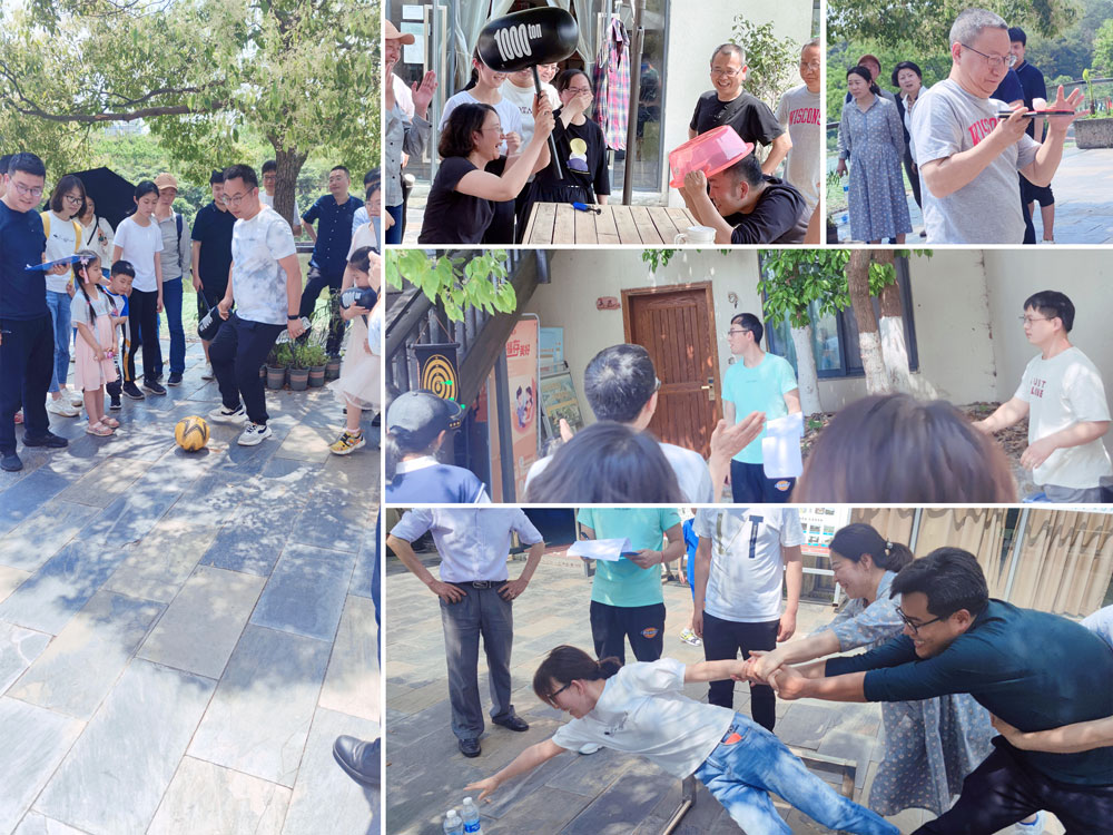 全体教职工参观璧山天河生态农庄后,开展了飞镖、足球射门、乒乓球接力、群龙取水、帽子与锤子等趣味比赛活动。比赛现场气氛热烈、和谐融洽、趣味横生,6个工会小组的参赛教职工齐心协力,奋勇争先,大家本着“友谊第一、比赛第二”的精神,互相加油鼓劲儿,观众们不畏炎热,兴致高昂,精神振奋。