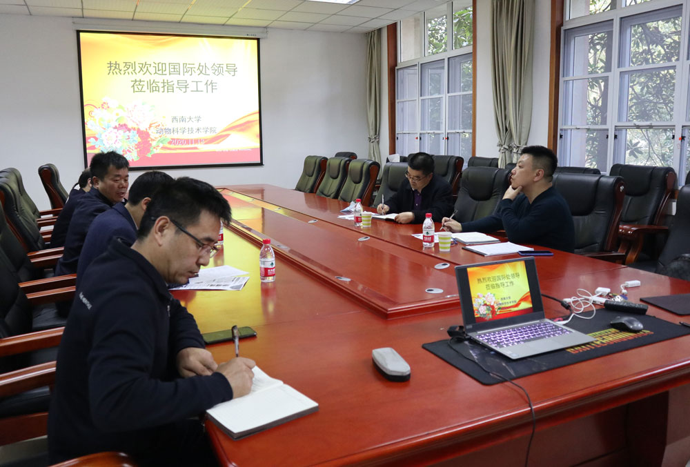 赵中权副院长对国际处张俊副处长一行来到动科院调研表示感谢,并表示我们一定会积极与外方进行培养方案对接,配备优秀师资开展全英文和双语课程建设,打造高素质专业教师队伍,培养出具有国际化竞争力的优秀学生,努力办好动物科学专业中外合作办学项目。