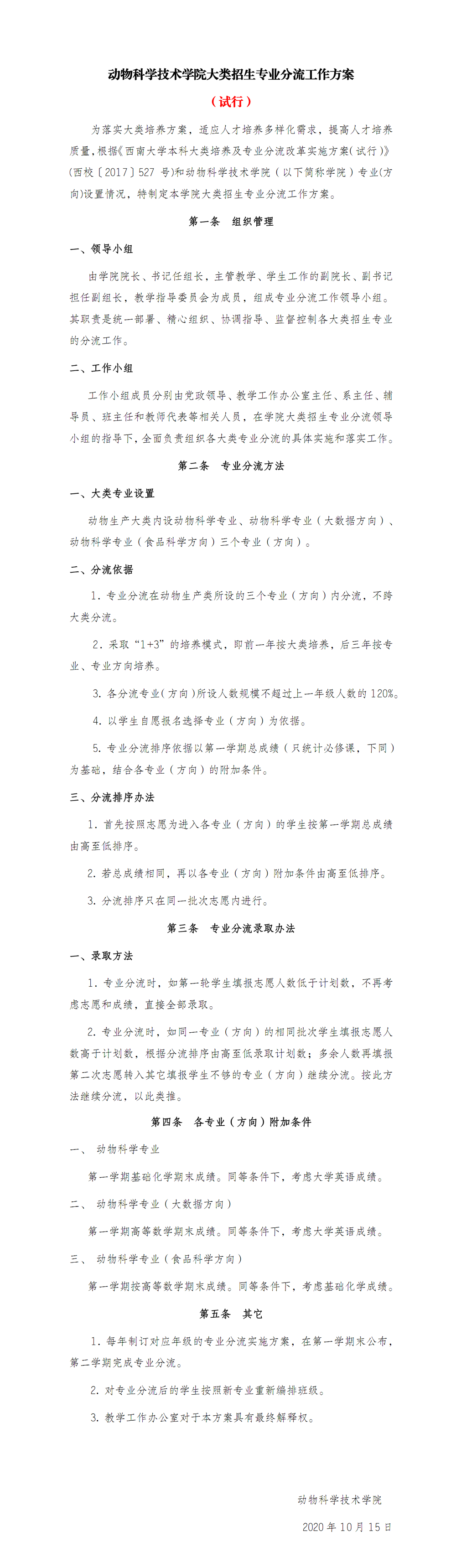 动正妹AV 大类招生专业分流工作方案(试行)