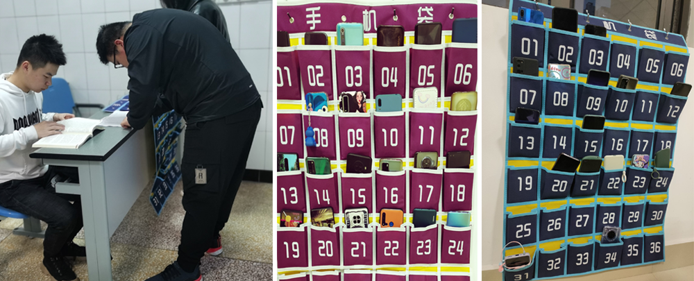 统一为每个本科班级配备的手机收纳袋,每位学生上课前都将手机调成静音或关闭,集中放置到收纳袋中,上课期间严格执行“无手机课堂”,严禁使用手机。
