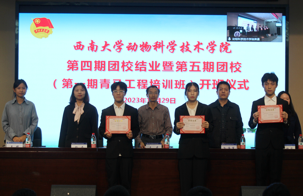 团委关于表彰第四期团校优秀学员的通知》,对第四期团校表现优异的7名学员予以表彰。在主席台就座的领导嘉宾为结业学员代表和优秀学员代表颁发了证书。第四期团校优秀学员代表侯雪茹同学发言,与大家分享了她在团校学习中的收获与感悟,并向新学员提出建议。第五期团校学员代表王霄同学发言,承诺要珍惜团校学习机会,认真听讲、勤于思考、积极实践,在学习中发挥先锋模范带头作用,培养求真务实的作风,不断提高理论素养和思想水平。文武做总结讲话,对第四期团校学员顺利结业和第五期团校成功开班表示热烈祝贺,希望第五期团校全体学员要学有所思、学有所成,练就过硬本领,主动承担责任,努力成长为“六有”新动科人才。