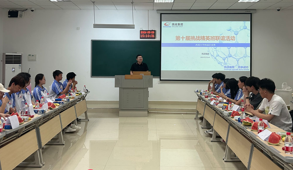 第十届“挑战精英班”在荣昌校区7b107教室组织开展就业指导培训讲座及2024年春季学期班级活动。挑战集团大客户事业部总经理陈艳青、人力资源部专员陈尚林,“挑战精英班”校内班主任彭香以及全体班级成员参加活动。