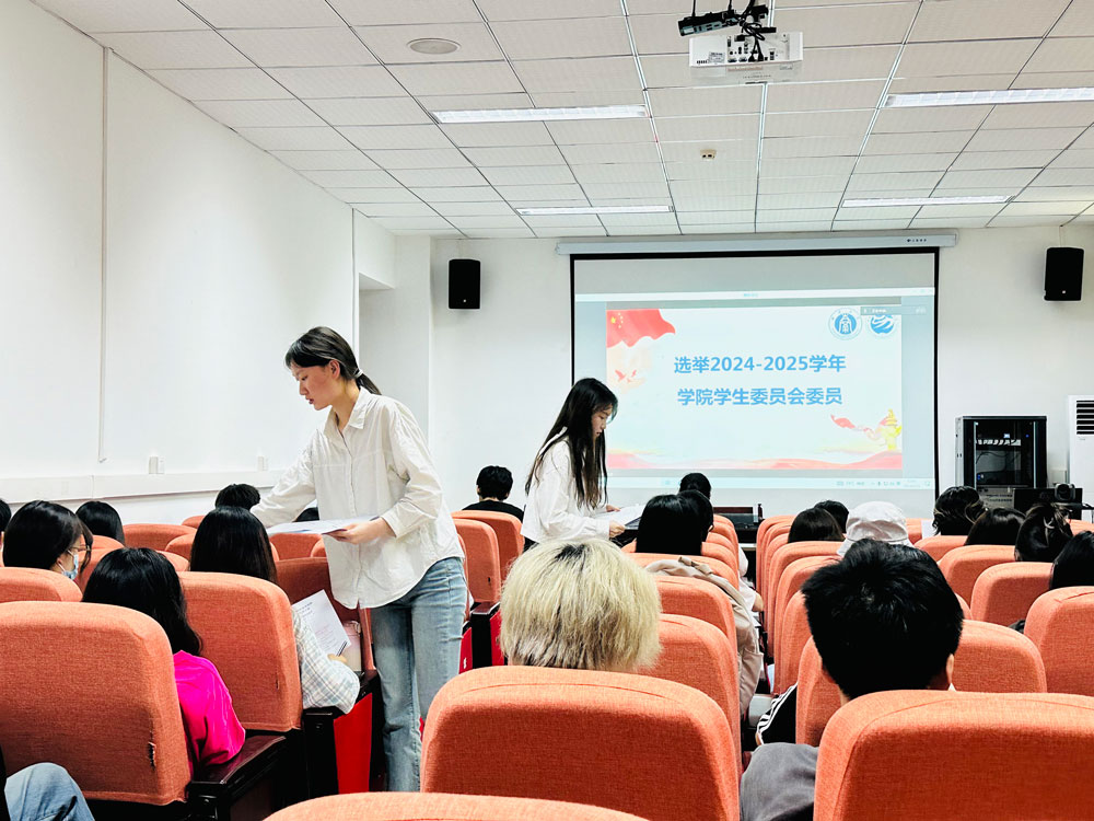 2024-2025学年学生会执行主席。经过学生代表现场投票选举,大会选出常真珍、陈渝、张一然3名同学为动正妹AV