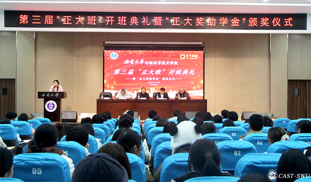 在荣昌校区2211报告厅举行第三届“正大班”开班典礼暨“正大奖助学金”颁奖仪式。正大集团重庆生猪养殖事业人力资源部经理龚运海,人事专员、第三届“正大班”企业班主任李波,正妹AV
