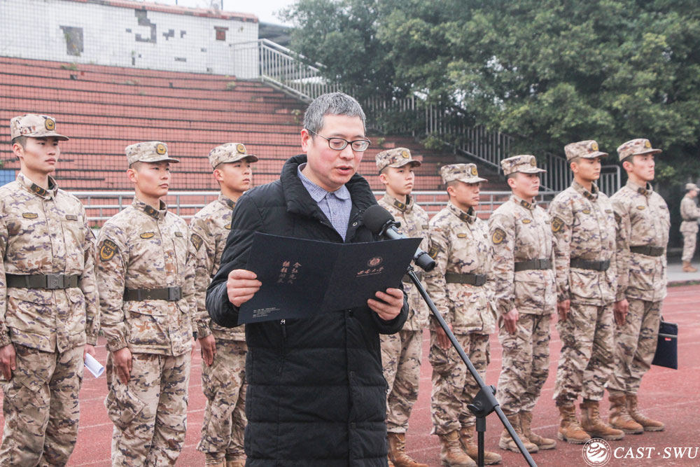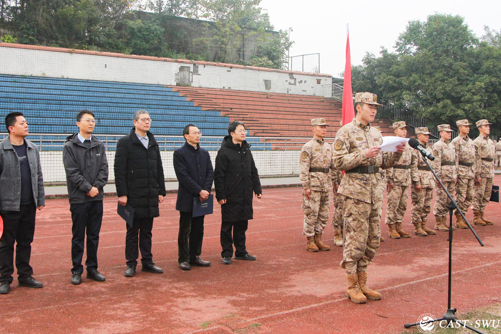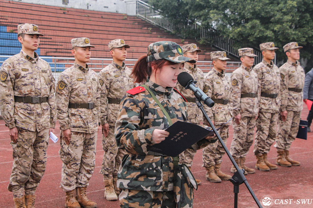 参训学员代表田悦可表态发言,决心做到:服从命令、听从指挥,认真学习、刻苦训练,巩固成果、传承发扬,致力于成为意志坚强、纪律严明、目标远大、素质优良的西大学子和时代新人。