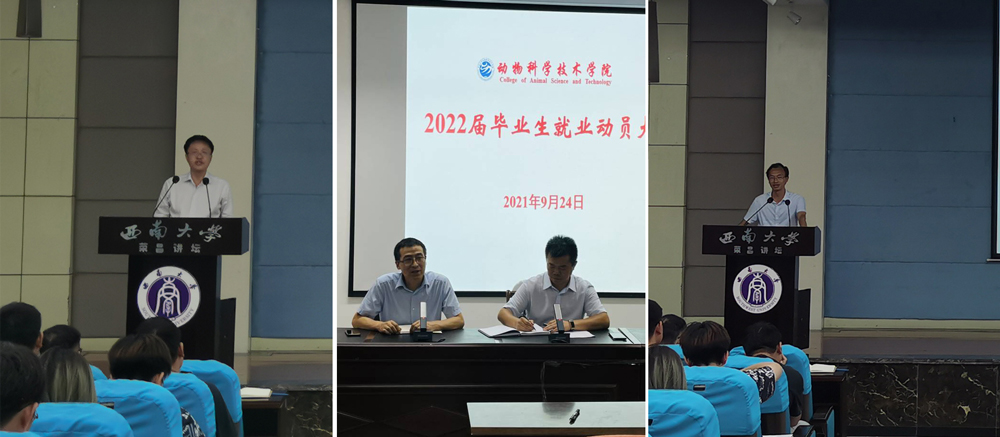 分别在荣昌、北碚召开2018级就业动员大会,着重结合2019、2020、2021三届毕业生就业数据,分析当前的就业形势和毕业生的主要去向,鼓励学生正视当下严峻的就业形势,围绕考研、考公、教师招考、自主创业等目标,结合自身实际尽早确定就业方向;并从六个方面庄重承诺给予学生就业帮扶。