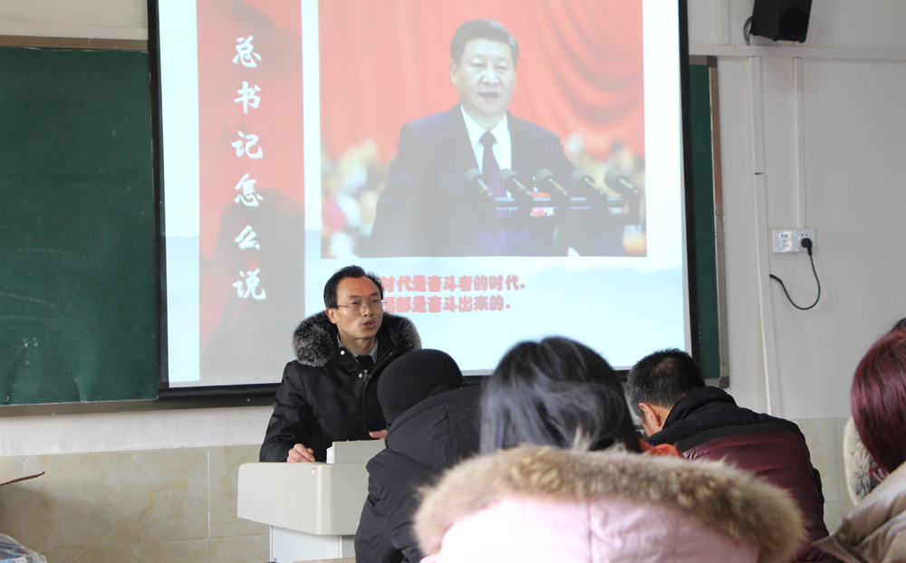 文武副书记为主题党日活动上“奋斗的教师,飞翔的学生”专题党课。党课中,他通过孟母三迁和断机杼的故事,在习近平总书记“新时代是奋斗者的时代”“幸福都是奋斗出来的”教诲中,指出各地标语乱象表明了社会普遍人文素养有待提高,作为老师要不断学习新知识、通过奋斗不断提高自身文化素养,言传身教培育好每一个学生,积极发掘学生身上的闪光点,让学生飞得更高、飞得更远、飞得更好。