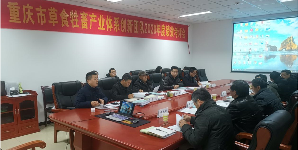 考评会上,赵永聚对参会领导和绩效考评组专家进行了介绍,通过了《重庆市草食牲畜产业体系创新团队绩效考评办法》,说明了2020年度考评流程和要求。随后,考评专家组组长、重庆市农业农村委畜牧业处晏亮副处长发表讲话并主持考评。体系内各功能研究室主任、综合试验站站长对团队2020年度工作完成情况依次进行了汇报,考评组专家针对资料及汇报进行了提问和点评并进行评分。