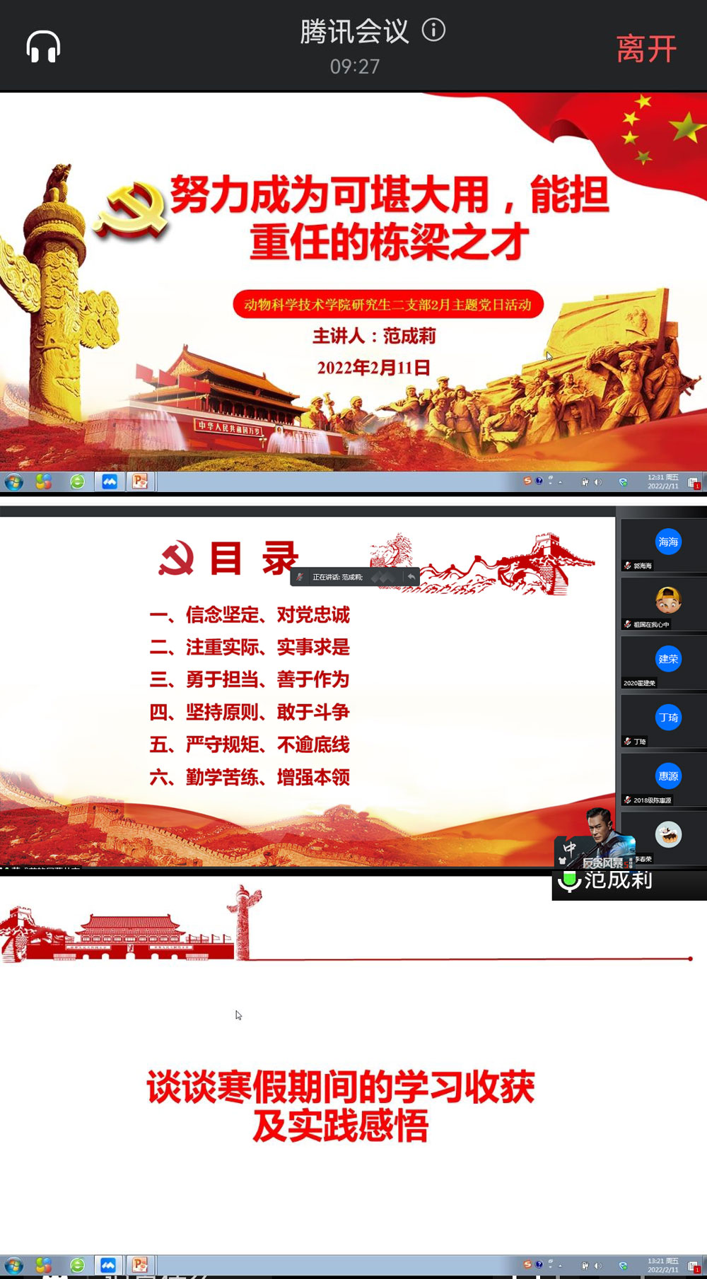 研究生二支部全体党员通过线上方式参加了“努力成为可堪大用,能担重任的栋梁之才”主题党日活动。