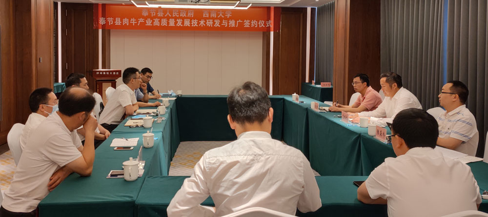 特别是肉牛团队的信任,并代表肉牛团队做出承诺,将坚守科学家精神和契约精神,以重庆市重大项目“优质肉牛的种质创新”的共同实施为契机,全面服务奉节肉牛产业高质量发展,做好技术支撑和智力支持,将奉节建设成为我国优质肉牛种源高地、高端牛肉生产基地;期待以此为起点,构建“政产学研用”紧密合作,希望“奉节黑牛”选育取得良好进展,早结高质量成果,早日填补我国西南丘陵山区高端肉牛种源空白。