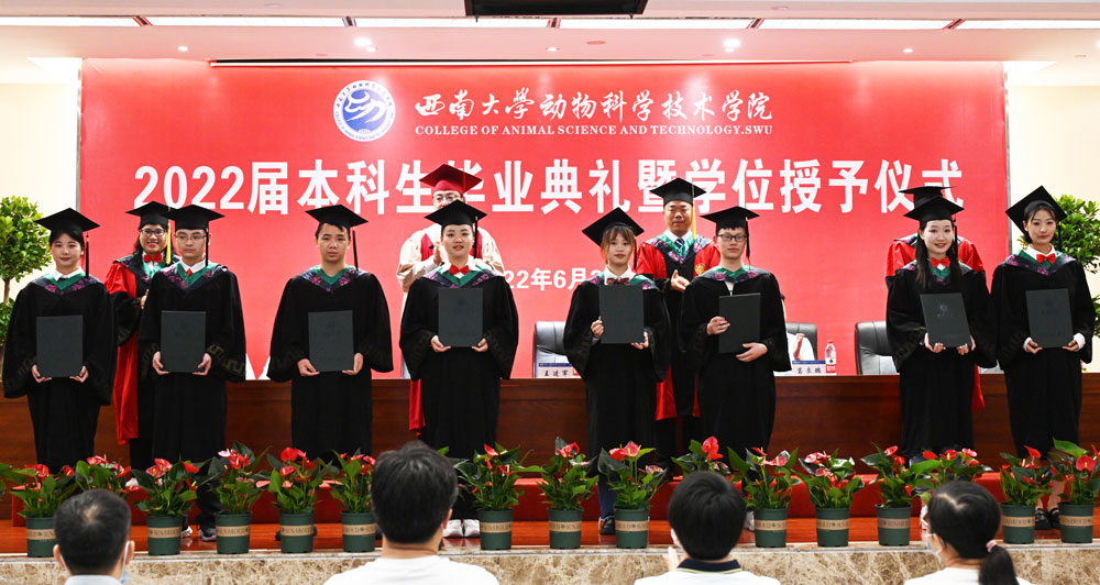 党委书记赵智华,院长、党委副书记、学术委员会主任赵永聚,副院长周克勇、赵中权,优秀校友代表、重庆市畜牧科正妹AV