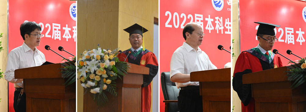 全院师生向全体2022届毕业生致以最热烈的祝贺和最美好的祝福,并提出三点希望:一是做一个信念坚定的人,无论何时都要保持学习,相信方法总比困难多,锻炼良好性格,锤炼高尚品格,成就信念坚毅的自己;二是做一个脚踏实地的人,在新的岗位上爱岗敬业、拼搏进取,做有理想、有抱负的年轻人、做谦虚好学的年轻人、做创新创优的年轻人,敢于尝试、勇于追梦;三是做一个勇于担当的人,要有一份光去发一份热,描绘出奋斗与奉献的青春底色,用青春、知识、大爱回报社会、尊敬父母、感恩师长。