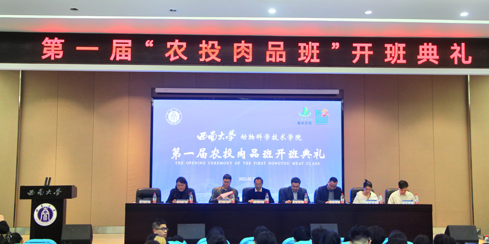 党委副书记、纪委书记文武、副院长向钊、第一届农投肉品班学员和各年级学生代表等参加,典礼由“农投肉品班”校内班主任郑优主持。
