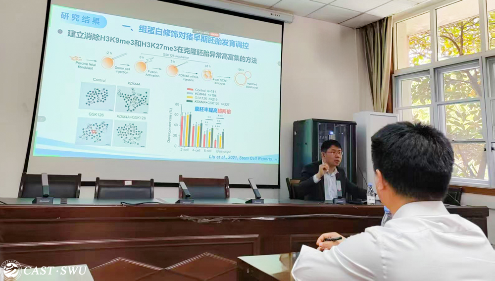 会上,苗义良教授作“猪早期胚胎发育与体细胞重编程机制的研究”的报告,他围绕表观修饰和转录因子是如何调控猪早期胚胎发育这一科学问题进行系统深入的介绍。