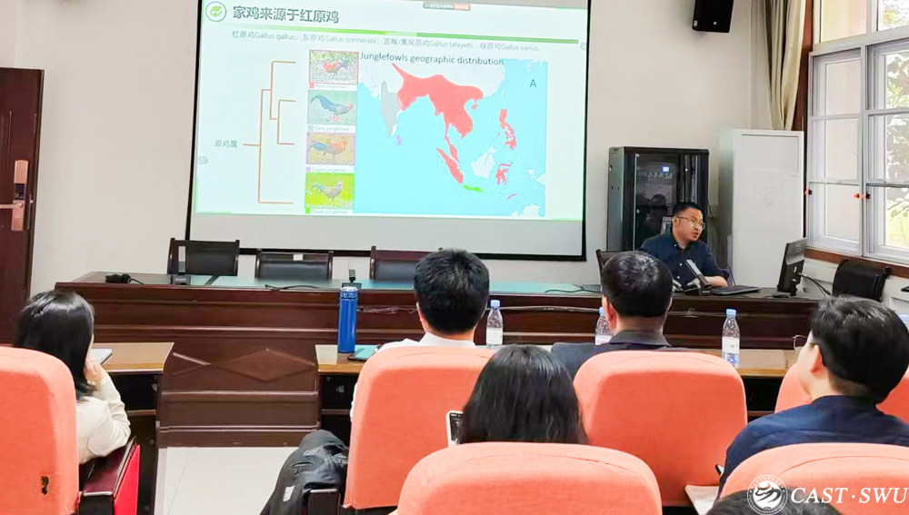 王明山研究员作“家鸡起源驯化的进化与功能基因组学研究”的报告,他对家鸡的驯化、不同品种鸡是如何维持品种独特特征以及如何适应极端环境的进行了全面细致的介绍。