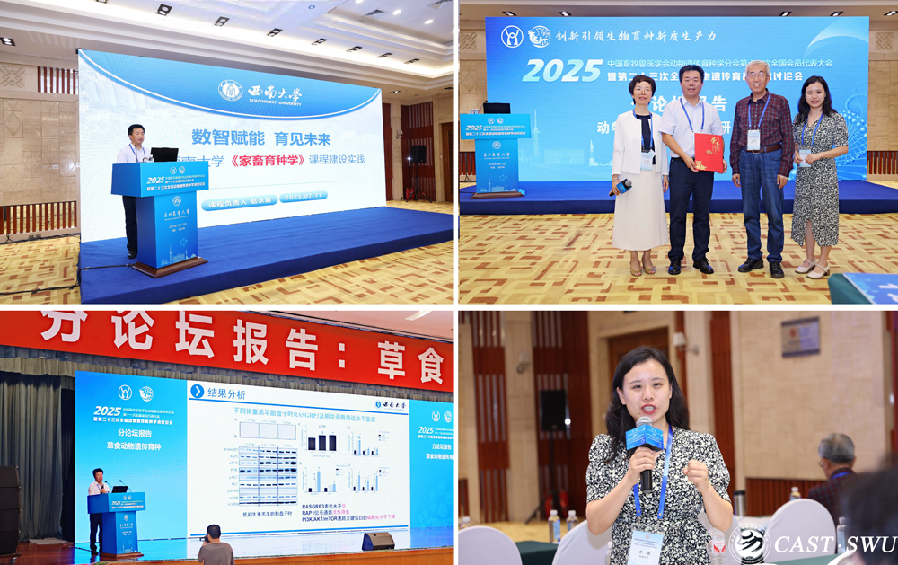学术交流环节,赵永聚教授作了题为《山羊早期胎盘发育中鸟嘌呤核苷酸释放蛋白3(RASGRP3)的表达规律与调控机制》的学术报告;在动物遗传育种教学研讨会上,赵永聚、兰茜受邀分享了《数智赋能,育见未来—正妹AV