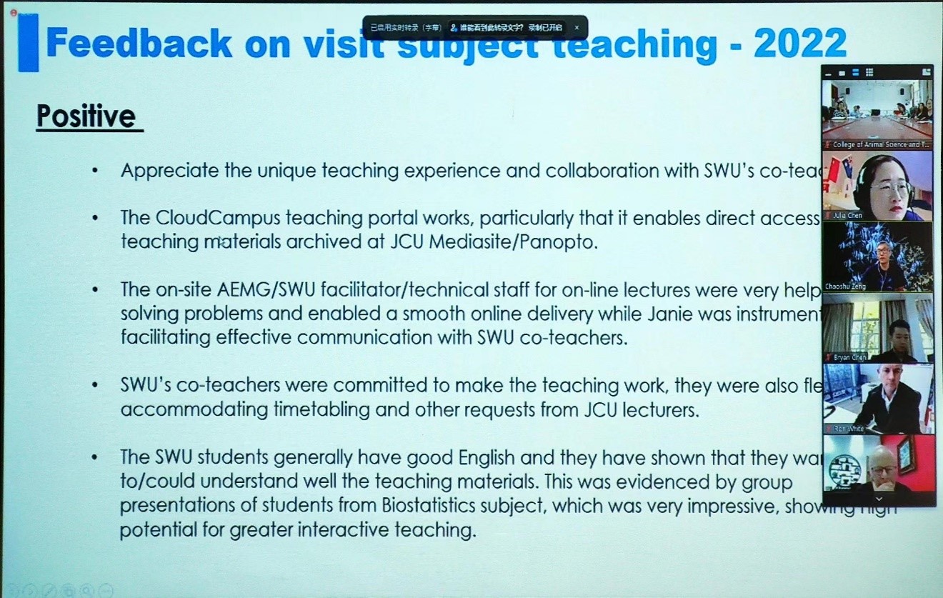 与澳大利亚詹姆斯·库克大学(James Cook University,JCU)及澳大利亚教育管理集团(AEMG)顺利召开2021 – 2022学期动物科学中外合作办学学术指导委员会(Academic Advisory Board,简称AAB)视频会议。JCU理学与工程正妹AV
