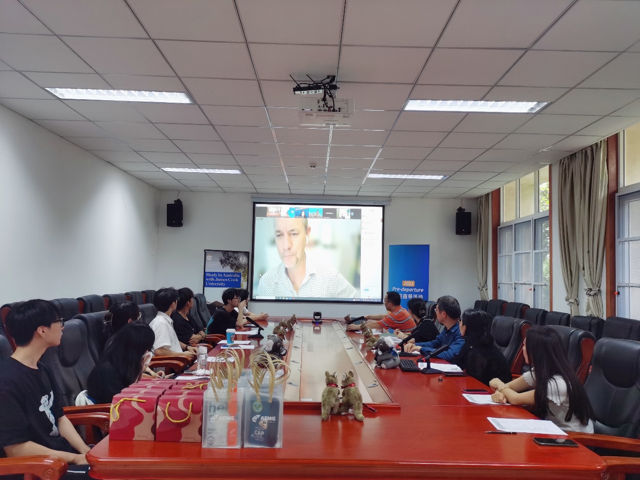 人才培养办公室主任李洋、中外合作办学与国际交流办公室联络员陈小川出席会议,JCU伙伴关系与项目发展主任Janie Edwards女士进行同声传译。