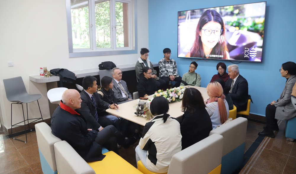 会上,赵永聚向学生介绍了西蒙•比格斯校长一行的情况,并对他们的到来表示热烈的欢迎。马库斯•莱恩从优质的学习环境、浓厚的学术氛围、广阔的就业前景等七个方面详细讲述了留学JCU的潜在优势。在交流环节,学生就赴澳期间的学习住宿环境、奖学金申请、寒暑假时间、就业方向等问题与马库斯•莱恩进行深入交流。集体见面会结束后,西蒙•比格斯、马库斯•莱恩还与参加2024年“2+2”和“3+2”留学项目的学生进行了面对面的交流,细致地介绍了在JCU的学习情况和留学准备,为明年留学澳洲的学生们增强了信心和期待。