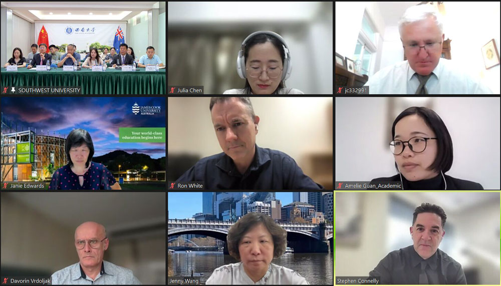 与澳大利亚詹姆斯·库克大学合作举办动物科学专业本科教育项目2024年联合管理委员会会议以线上线下结合的形式召开,詹姆斯·库克大学常务副校长马尔库斯·莱恩、自然与工正妹AV
