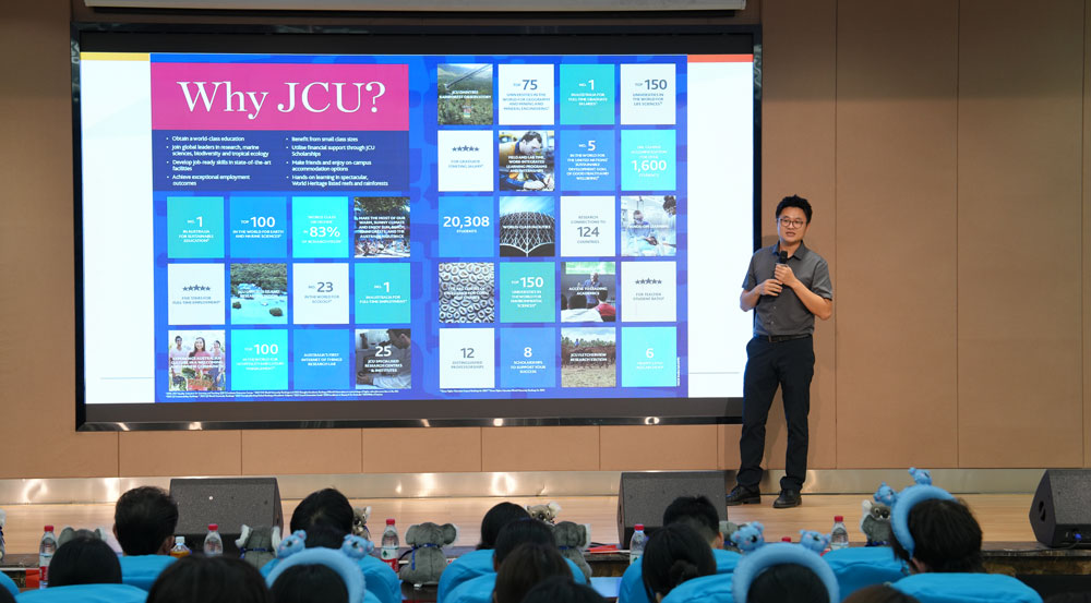 会上,澳大利亚詹姆斯库克大学(James Cook University, JCU)校长西蒙·比格斯教授通过线上视频的方式欢迎2024级新生的到来,表示通过项目的合作希望学生们到JCU学习交流。杨游全面介绍了项目基本情况和培养方案,让同学们充分了解到项目基本信息、专业课程计划、学生升学。孙雅望介绍了中外合作办学项目的培养模式并回答了同学们有关项目培养及其出国等相关问题。