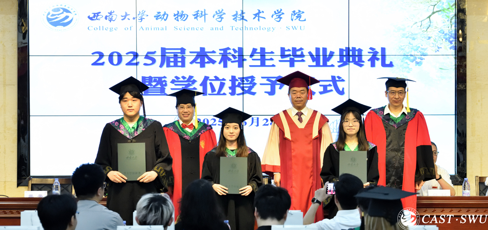 院长赵永聚向全体2025届毕业生致以最热烈的祝贺和最美好的祝愿,希望大家牢记习近平总书记的殷切嘱托,以志为舵,行稳家国万里,将个人理想熔铸于民族复兴的星河,踏出一条无悔的家国之路;以德为锚,守望文明星火,在时代的浪潮中守护文明的火种;以术为楫,深潜专业瀚海,为推动畜牧业高质量发展贡献自己的力量;以新为刃,劈斩时代迷障,保持好奇心和求知欲,用新思维迎接挑战。